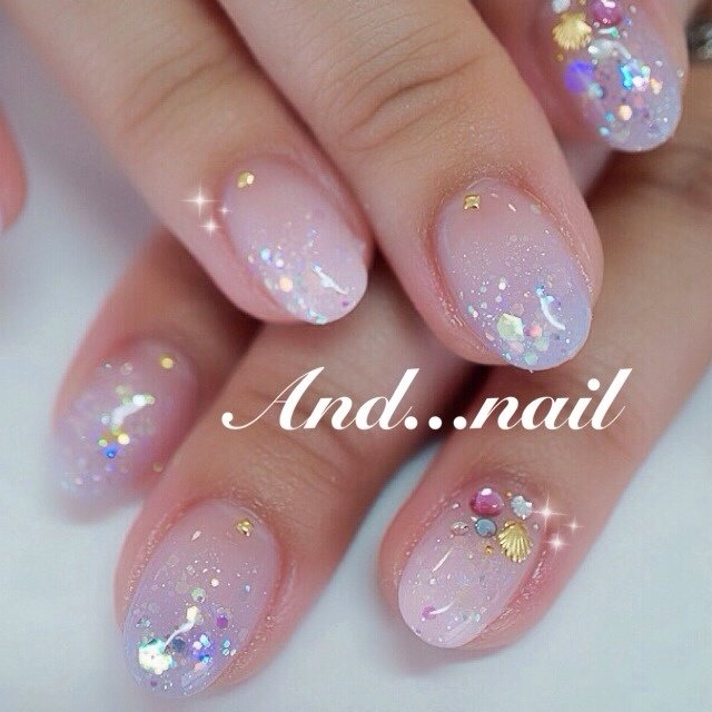 ピンク ホロ ラメ シェル 貝殻 夏ネイル ハンドメイドマーケット Minne